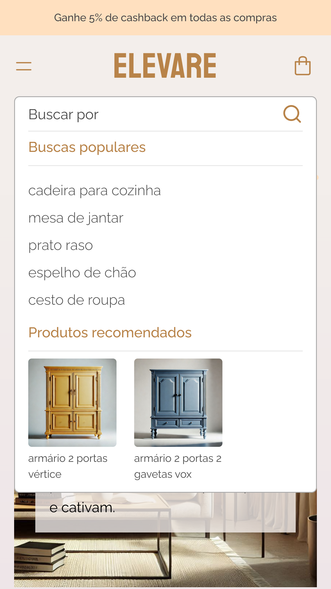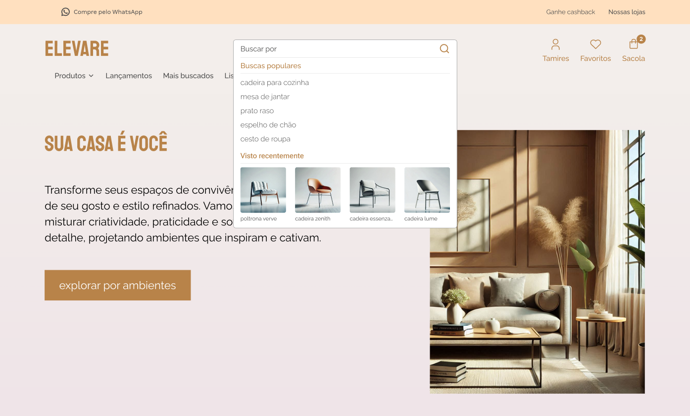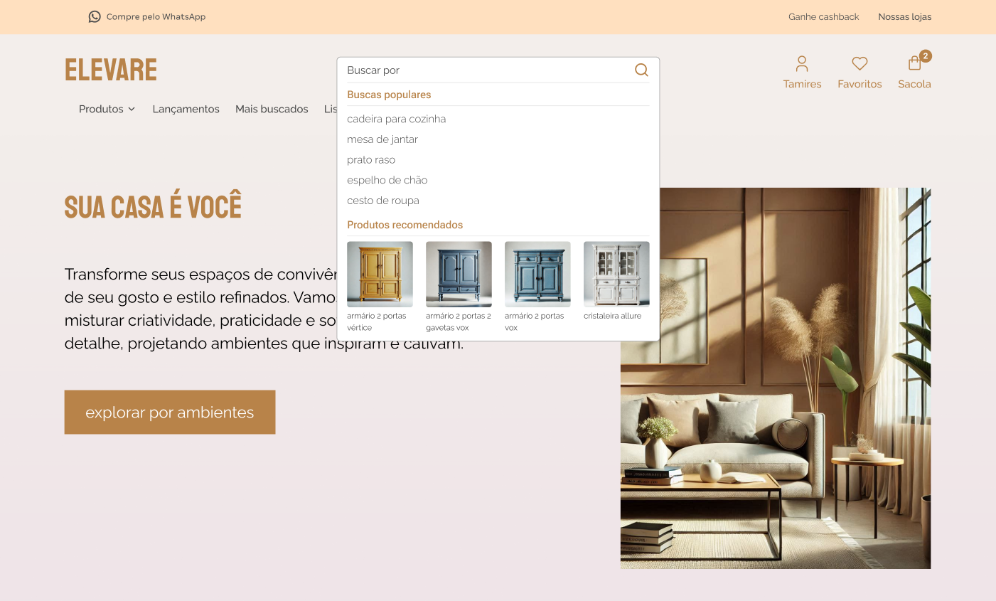 Conforme o cliente digita o que deseja no campo, ele vai recebendo sugestões relacionadas ao que digitou. Por exemplo, se o cliente desejar pesquisar em um e-commerce por cadeiras, ao digitar as três primeiras letras (“cad”), aparecerá um campo abaixo da busca com as sugestões de busca. Nessa lista de sugestões poderíamos ter os termos: “cadeira para cozinha”; “cadeira gamer”; “cadeira preta”.